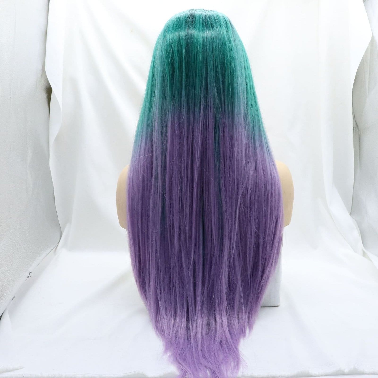 0640 Matte Long Straight Ombre Synthetic Wig – 24 Inch Teal to Purple Heat Resistant Hair for Women, Natural Looking & No Plastic Shine