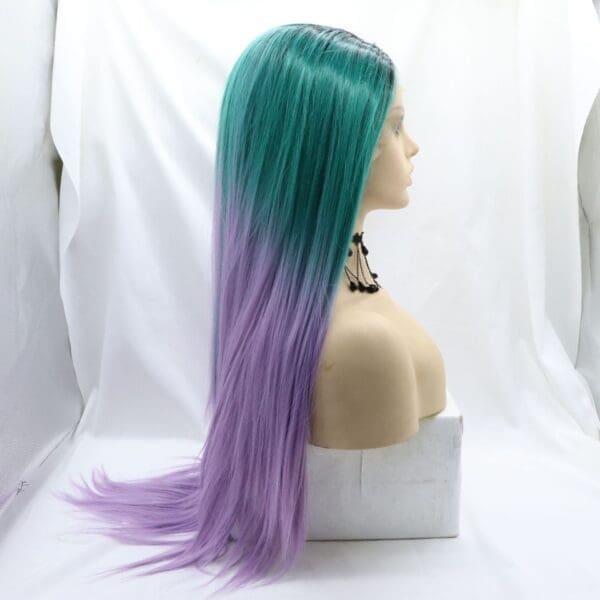 Product Overview: Stand out with the 0640 Ombre Long Straight Wig, featuring a stunning color transition from vibrant teal to deep purple. This high-fashion wig is designed for those who love bold, expressive styles without compromising on a natural feel. Its sleek, straight texture and no-bangs design provide a modern, versatile look perfect for festivals, cosplay, or daily fashion statements.