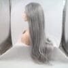 3 reviews for China Qingdao factory straight front lace wig matte high temperature silk silver gray free parting straight hair fluffy natural headgear