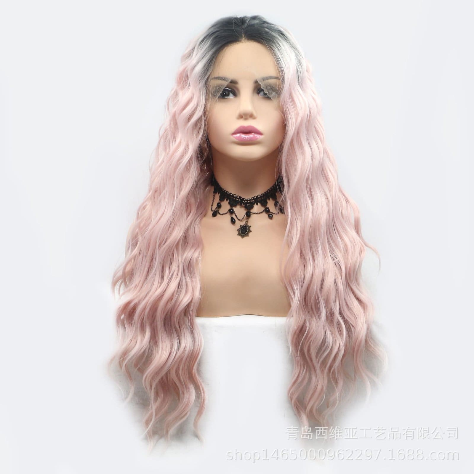 Be the first to review “Hand-Tied Lace Front Deep Wave Wig – 24 Inch Ombre Pink Crimped Curly Hair, Premium Matte Heat Resistant Fiber, Realistic & No Plastic Shine”