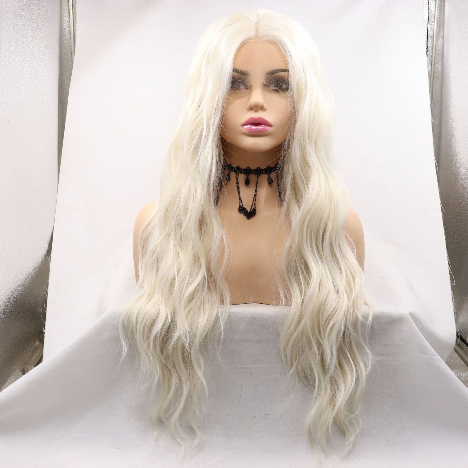 - 1 x Matte Hand Tied Lace Long Wavy Wig (60# Platinum Blonde).