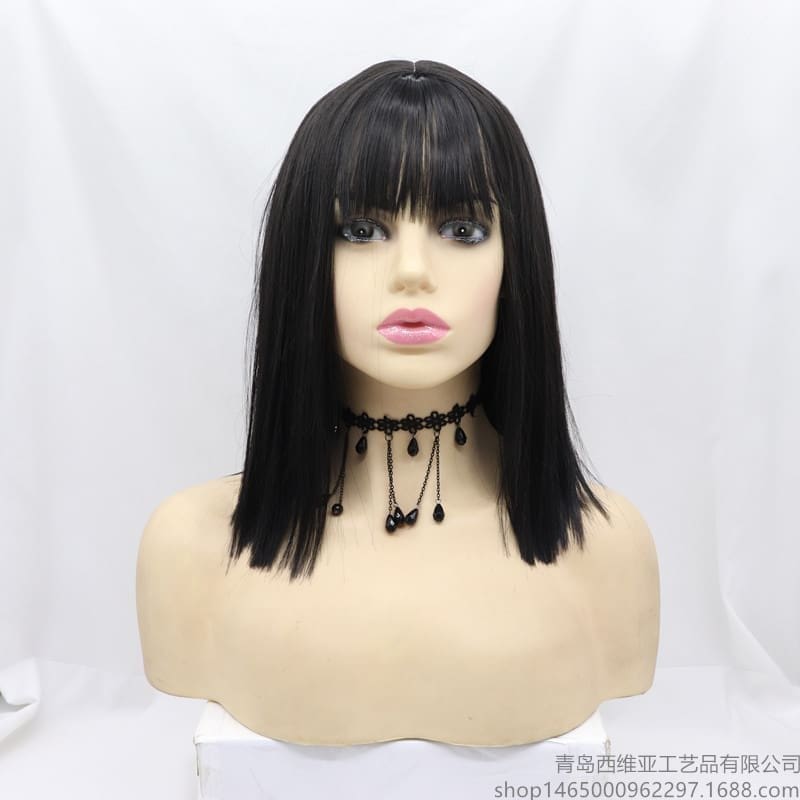 Qi bangs matte high temperature silk chemical fiber headgear daily whole wig one drop shipping