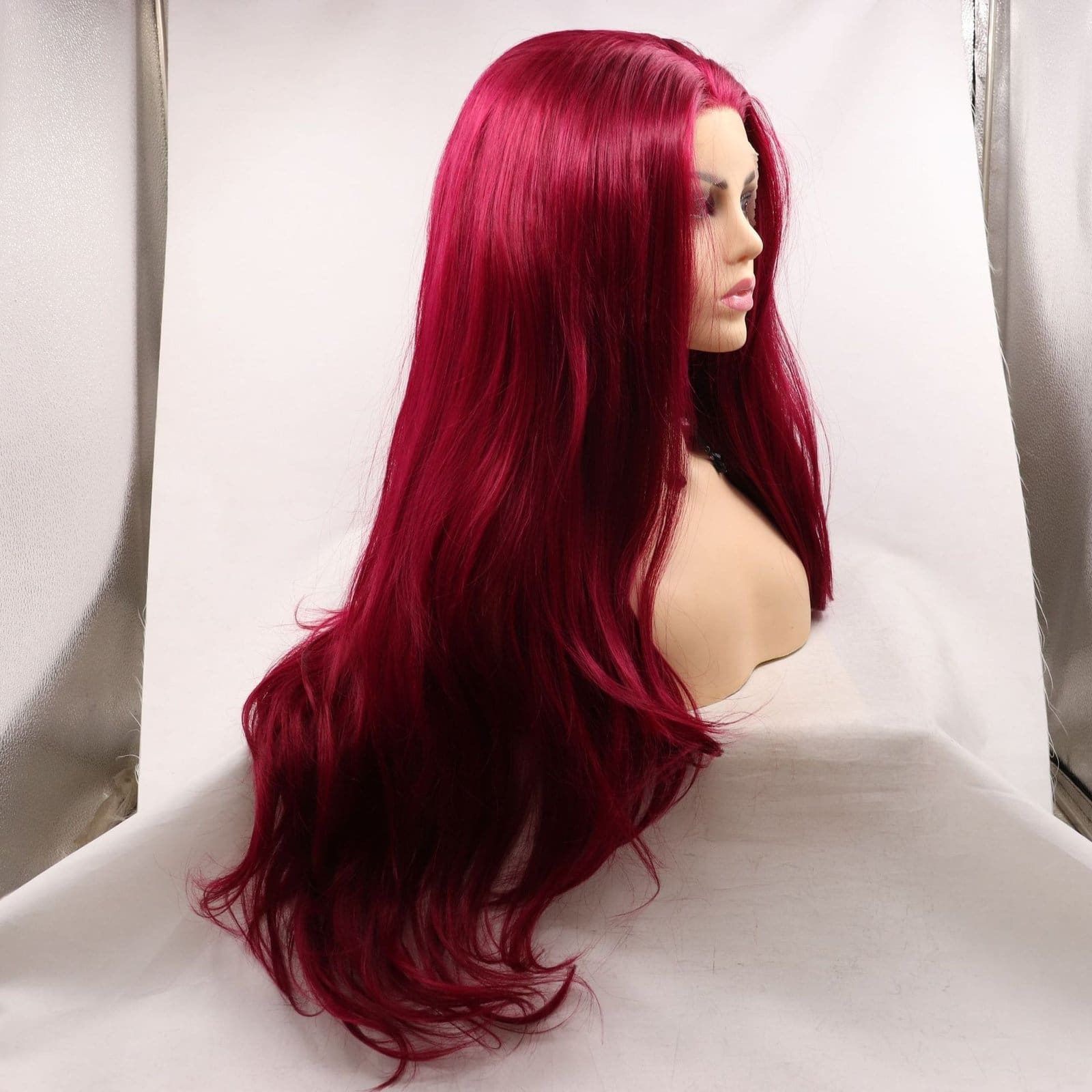 • Vibrant Rose Red Hue: The hair is rendered in a deep, saturated rose red that maintains its intensity throughout. This bold shade is meticulously toned to ensure a consistent, high-fashion finish.